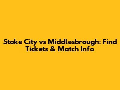 Stoke City Vs Middlesbrough: Find Tickets & Match Info