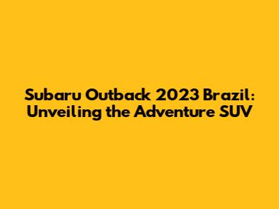 Subaru Outback 2023 Brazil: A Complete Overview