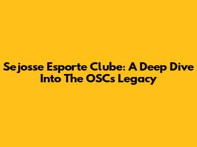Sejosse Esporte Clube: A Deep Dive Into The OSC's Legacy