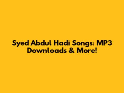 Syed Abdul Hadi Songs: MP3 Downloads & More!