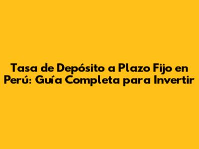 Tasa De Depósito A Plazo Fijo En Perú: Guía Completa Para Invertir
