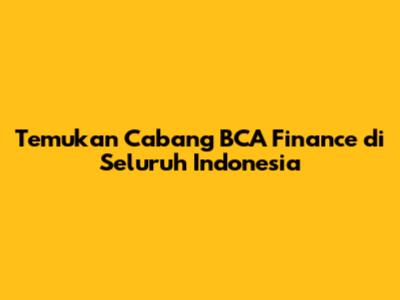 Temukan Cabang BCA Finance Di Seluruh Indonesia