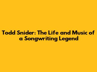 Todd Snider: The Life And Music Of A Songwriting Legend