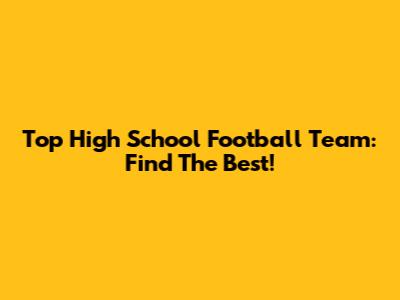 Top High School Football Team: Find The Best!