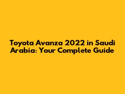 Toyota Avanza 2022 In Saudi Arabia: Your Complete Guide