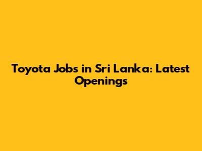 Toyota Jobs In Sri Lanka: Latest Openings