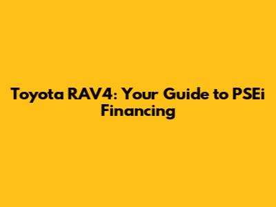 Hey there, future RAV4 owners! Thinking about cruising around in a brand-new Toyota RAV4 but not quite sure how to finance it? Don't sweat it, guys! We're diving deep into the world of PSEi Financing and how it can help you get behind the wheel of your dream SUV. This guide is your one-stop shop for everything you need to know about PSEi financing options specifically tailored for the awesome Toyota RAV4. We'll break down what PSEi financing is, how it works, and why it might be the perfect fit for your needs. Get ready to explore the exciting possibilities of owning a RAV4 with the help of PSEi! Let's get started and make your RAV4 dreams a reality. This article will provide a comprehensive guide, making it easier for you to understand and get your desired SUV.