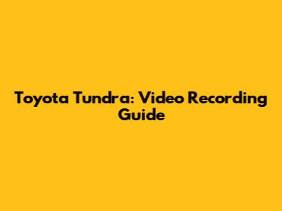 Toyota Tundra: Video Recording Guide