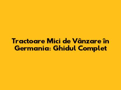 Tractoare Mici De Vânzare În Germania: Ghidul Complet