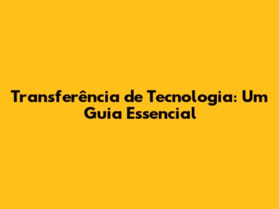 Transferência De Tecnologia: Um Guia Essencial