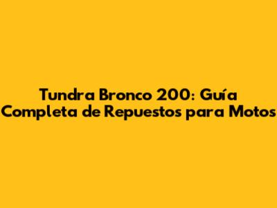 Dónde Encontrar Repuestos para tu Tundra Bronco 200