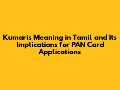 Understanding 'Kumari' In Tamil And PAN Card Applications