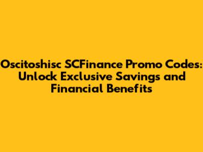 Unlock Savings: Oscitoshisc SCFinance Promo Codes