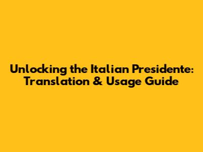 Unlocking The Italian 'Presidente': Translation & Usage Guide