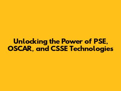 Unlocking The Power Of PSE, OSCAR, And CSSE Technologies