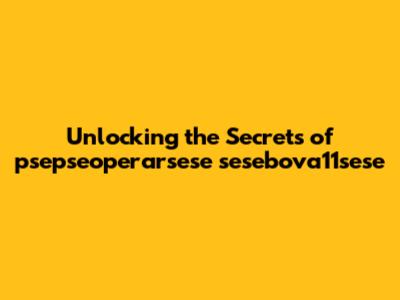 Unlocking The Secrets Of Psepseoperarsese Sesebova11sese