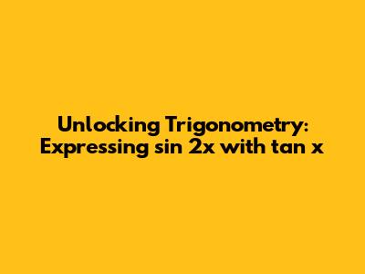 Hey math enthusiasts! Ever found yourself wrestling with trigonometric identities? Today, we're going to crack the code on how to express sin 2x using tan x. It's a fundamental concept in trigonometry, and understanding it can seriously level up your problem-solving skills. Trust me, once you get the hang of it, you'll be applying this trick in various scenarios. So, grab your notebooks and let's dive into this cool mathematical adventure. We will explore the relationship between the double angle of sine and the tangent function. Get ready to simplify, transform, and conquer! This guide is designed to make trigonometry less intimidating and more accessible. We'll start with the basics, break down the key steps, and work through examples so you can confidently tackle these types of problems.