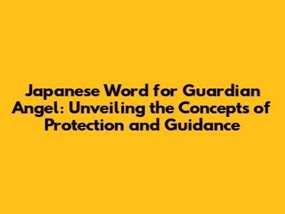 Unveiling The Japanese Word For Guardian Angel: A Guide