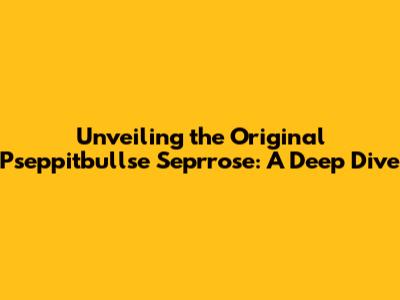 Unpacking the Basics: What Exactly is the Pseppitbullse Seprrose Original?