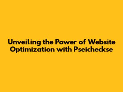 Unveiling The Power Of Website Optimization With Pseicheckse