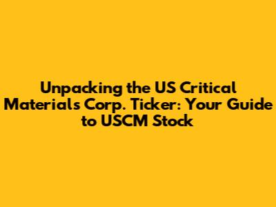 Hey everyone, let's dive deep into the US Critical Materials Corp. ticker, commonly known as USCM. If you're looking to understand what this company is all about and how its stock performs, you've come to the right place, guys. We're going to break down everything you need to know about USCM, from its core business to its market presence. Understanding the ticker symbol is the first step in grasping any company's financial journey. It's like the company's unique ID in the bustling stock market. For US Critical Materials Corp., that ID is USCM. This symbol represents the company on exchanges, allowing investors to track its performance, buy, and sell its shares. But what exactly does US Critical Materials Corp. do? That's the million-dollar question, isn't it? They are involved in the critical materials sector, a field that's becoming increasingly vital in today's world. Think of materials essential for advanced technologies, renewable energy, and national security. We're talking about elements and compounds that are the building blocks of our modern lives and the innovations of tomorrow. The demand for these materials is on the rise, driven by global trends like electrification, digitalization, and the push for sustainable energy solutions. So, when you see the USCM ticker, it's a gateway to understanding a company positioned at the forefront of supplying these crucial resources. This article will serve as your comprehensive look into US Critical Materials Corp., exploring its business model, its role in the supply chain, and what makes its ticker symbol, USCM, significant for investors keen on the critical materials space. We'll cover its operational focus, potential growth areas, and the factors that could influence its stock price. Stick around, and let's get you up to speed on USCM!