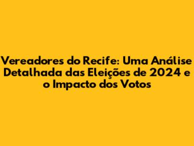 Vereadores Do Recife: Eleições 2024 E Análise Dos Votos