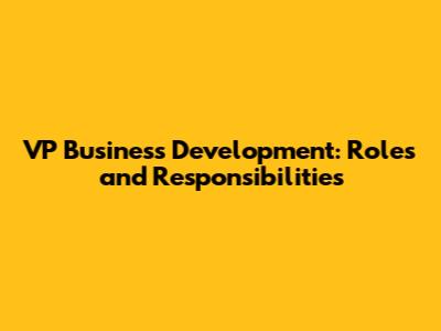 VP Business Development: Roles And Responsibilities