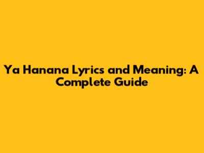 Ya Hanana Lyrics And Meaning: A Complete Guide