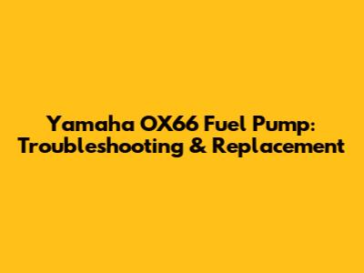 Yamaha OX66 Fuel Pump: Troubleshooting & Replacement