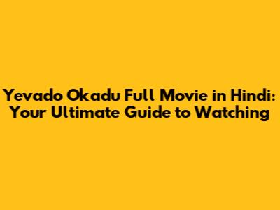 Where Can You Watch the Yevado Okadu Full Movie in Hindi?